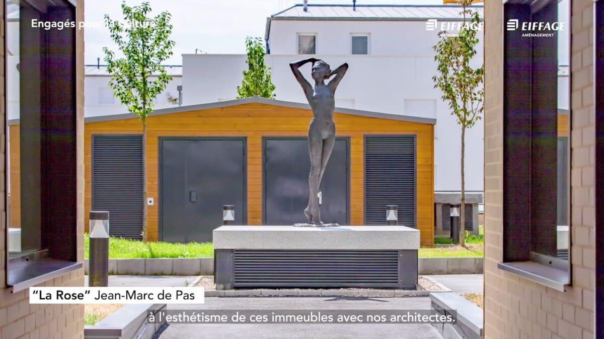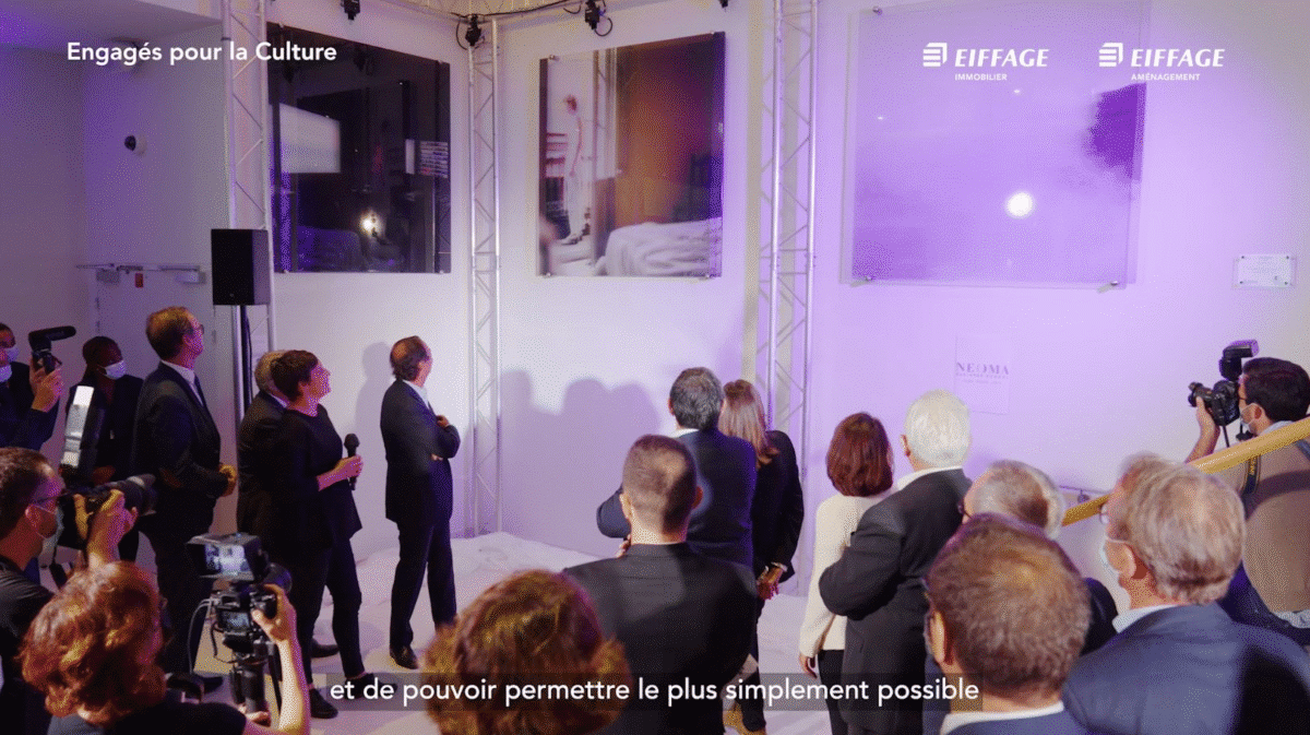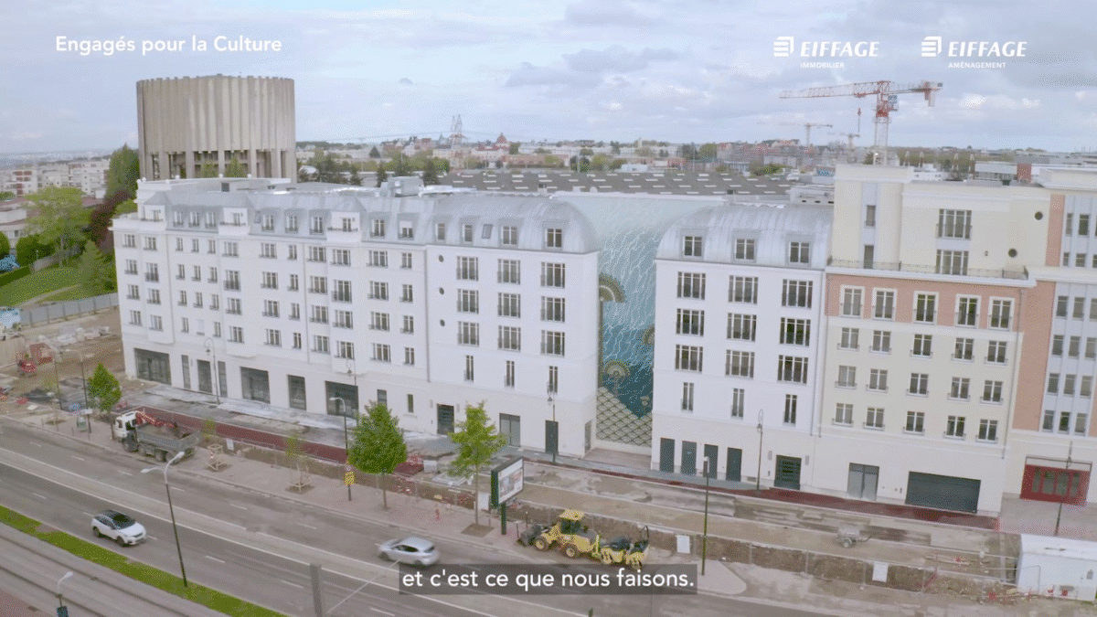 Nous avons réalisé une dizaine d’entretiens filmés, dans plusieurs lieux pour capter les images nécessaires : un chantier à Saint-Ouen, le siège d’Eiffage à Vélizy, l’atelier d’un artiste à Paris, ainsi qu’à l’inauguration d’une œuvre dans le 13ème arrondissement.