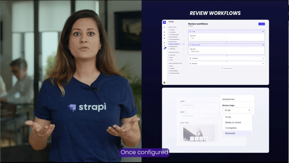 Pour cela, nous avons reçu un brief détaillé, un storyboard préparé et les écrans des nouveautés Strapi, ce qui nous a permis de planifier le tournage. Ensuite, nous avons filmé les membres de l’équipe Strapi qui ont présenté les nouvelles fonctionnalités.