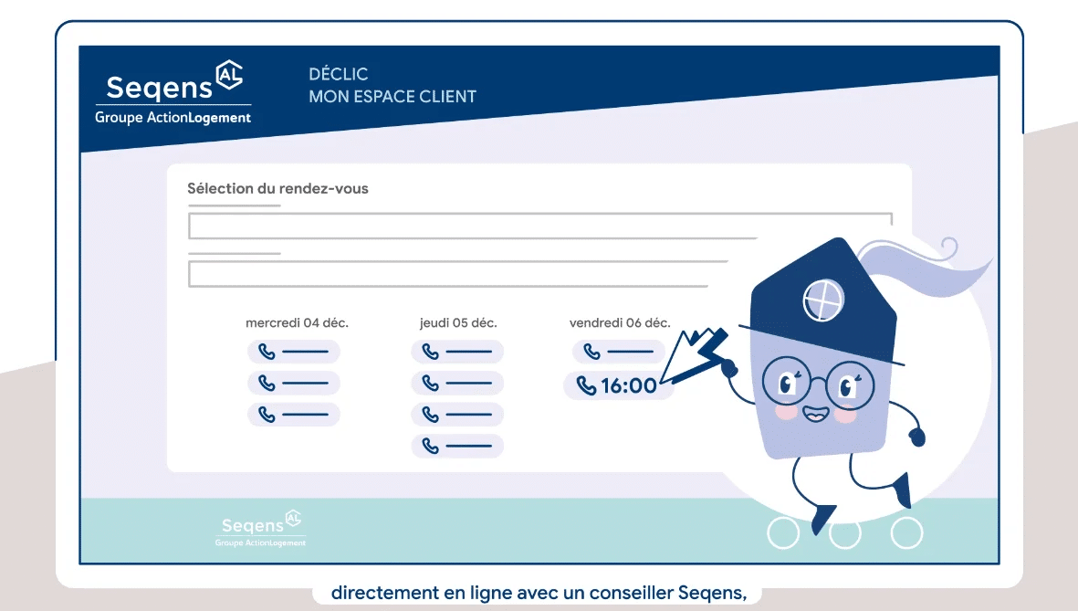 Nous avons conçu une vidéo tutoriel mêlant pédagogie et dynamisme, pour guider les locataires pas à pas dans l’utilisation de Seqens Déclic.